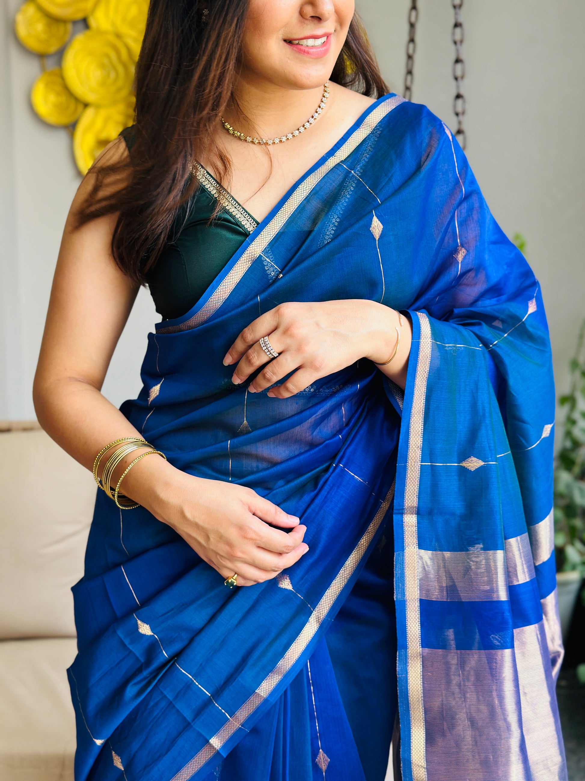 - Fabric: Handloom Maheshwari cotton silk — lightweight, breathable, and soft on the skin